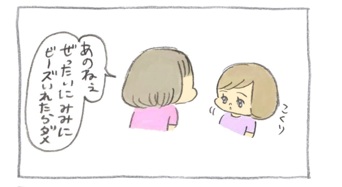 【アクアビーズを買ったら入ってた「絶対にビーズを耳に入れないで下さい」という注意書きにめちゃくちゃビビる上の子】